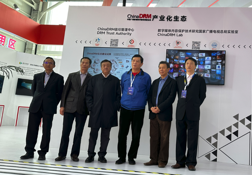 2023年4月19—21日,第二十九屆中國國際廣播電視信息網(wǎng)絡(luò)展覽會(CCBN2023)在北京首鋼會展中心舉辦,4月21日上午,中國電影著作權(quán)協(xié)會負(fù)責(zé)人侯光明一行、中國電影放映發(fā)行協(xié)會會長韓曉黎一行、國家電影局原副局長 中國電影集團(tuán)公司原董事長楊步亭來到會展中心,參觀了“ChinaDRM產(chǎn)業(yè)化推進(jìn)成果展”的展臺。